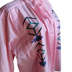 Vintage 80's Wrangler Womens XL Pink Button-Up Shirt Geometric Pattern Design