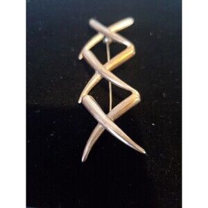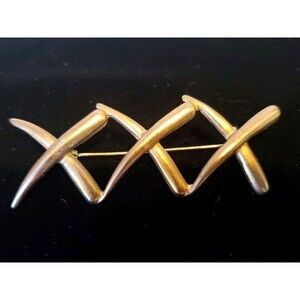 Vintage 80s X Brooch Modernist Triple X Hugs Pin Rustic Gold Tone
