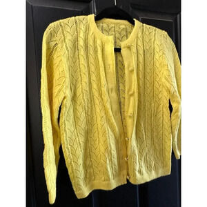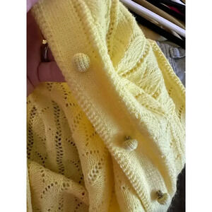 Vintage 80's Yellow Hand Framed Cable Knit Cardigan Sweater