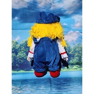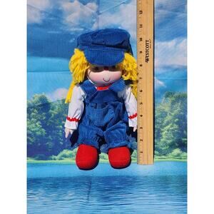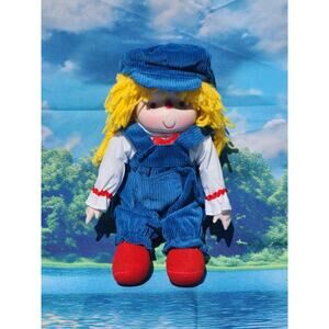 Excellent pre-owned condition vintage Komfy Kids doll with yellow hair, blue overalls, and blue hat. She has porcelain hands and face but everything else is soft plush. Please see pictures and feel free to let me know if you have any questions.