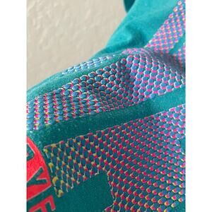 Turquoise, yellow, pink black, purple iconic 80s colorway