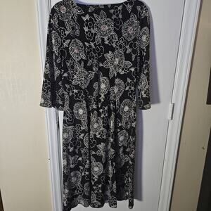 This Vintage 80s Yves Cossette Depeche Mode Floral Silk Dress in size 14 exudes a classic and elegant style perfect for various occasions such as weddings, parties, and workwear. The midi-length shift dress features a boat neckline, 3/4 sleeves, and a pullover closure, making it easy to wear. Beautiful dainty beading for accents.The black floral pattern adds a touch of sophistication to the lightweight silk fabric, ideal for summer, fall, and spring seasons. This stylish dress is a timeless piece that embodies the gothic corporate look with a hint of vintage flair from the renowned brand Yves Cossette Depeche Mode.