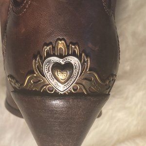 Vintage 80's Zodiac Western Boots Genuine Leather with Metal Hearts