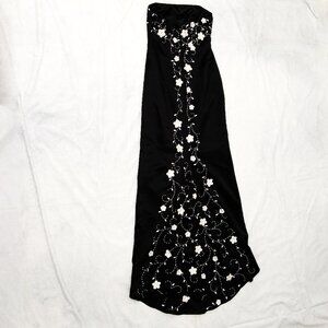 Not only is it incredibly flattering, it is downright magical with the beaded swirl pattern complete with fabric white flowers.