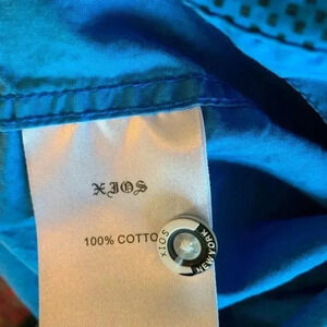 New wave 80s button down with slanted pockets and fine polka dot pattern. Very Huey Lewis and the news. Or Talking Heads.