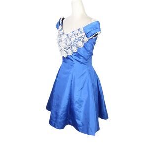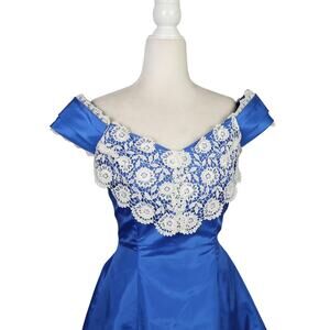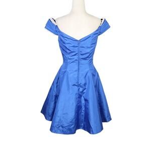 Vintage 80s cobalt blue taffeta off shoulder mini party dress S
