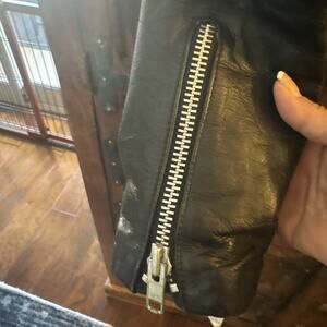 With a regular size 46 fit, this jacket boasts shoulder pads that add a touch of retro flair to the overall design. It's ideal for the fall and winter seasons, and since it's a dry clean only garment, you can trust that the quality and integrity of the leather will remain unmatched. Embrace the timeless appeal of this black motorcycle jacket and make it a staple in your wardrobe.