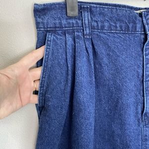 Vintage 80s French Navy denim midi skirt. Pockets, belt loops, slight pleating at the waist, 100% cotton. Perfect paired with a lacy camisole, a tee, or a button down shirt & great for all seasons. Just a classic piece & wardrobe staple. Made in the USA. Marked a 16 Tall. Vintage sizing varies from modern- review measurements to ensure a good fit. Measures (flat, unstretched, approximate): Waist: 16in, Hip: 21.5in, Length: 30.5in