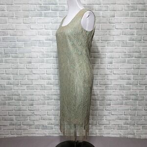 Vintage 80s does 20s Damianou Womens M Green Metallic Fringe Gown Dress