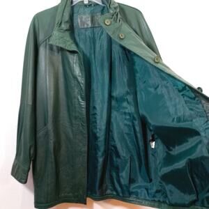 Vintage 80s forest green leather coat Jacqueline Ferrar jacket M