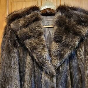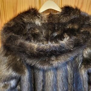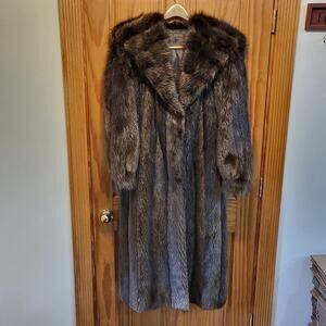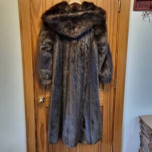 Vintage 80s full length Hooded Beaver fur coat size large to XL
