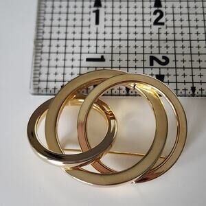 Vintage 80's gold tone 3 ring intertwined pin brooch