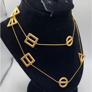 Vintage 80s goldtone Geometric Station Necklace Long Strand 30in