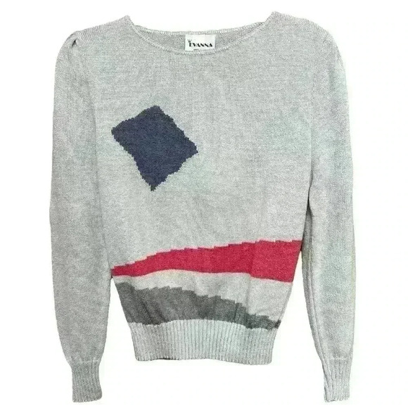 Vintage 80s gray geometric print long sleeve sweater size 10 (see measurements)