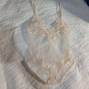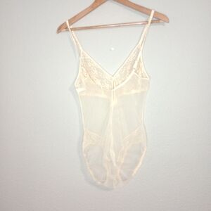 Vintage 80s lace trim sheer teddy