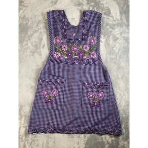 Vintage 80's pinafore apron tunic plaid flower embroidery S cottagecore feminine