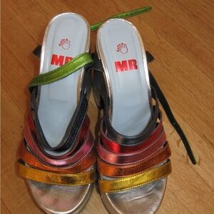 Vintage 80s rainbow metallic leather platform heels
