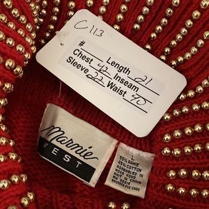Vintage 80’s red Marmie West sweater. D113 Ramie/cotton Has not been laundered.