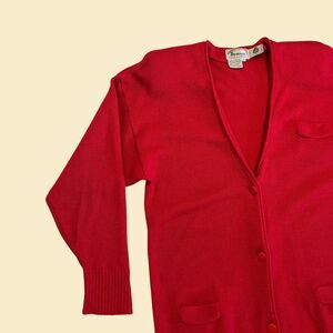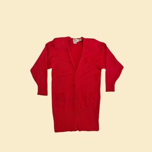 Vintage 80s red lambswool cardigan sweater, long fitting Spanner Imports size L
