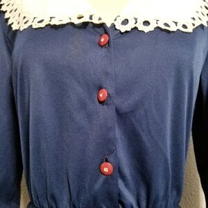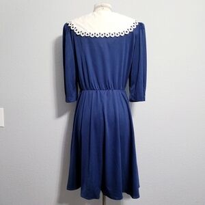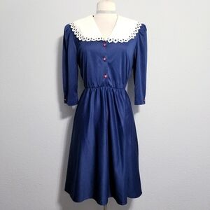 Vintage 80's retro Cottage Core blue office dress 10 P