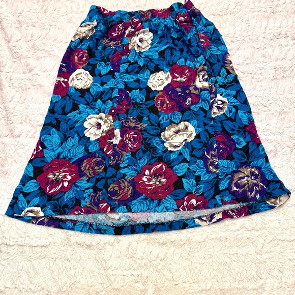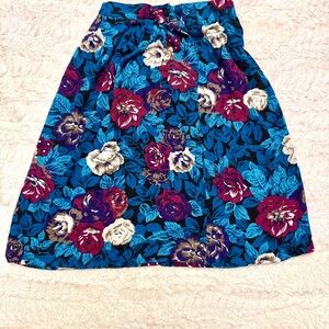 Vintage 80’s size 12 Danielle B Floral Midi Skirt Blue & Purple Tropical vibes