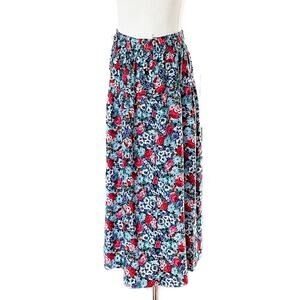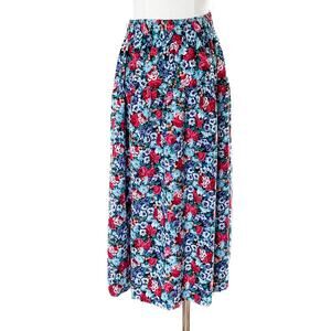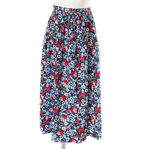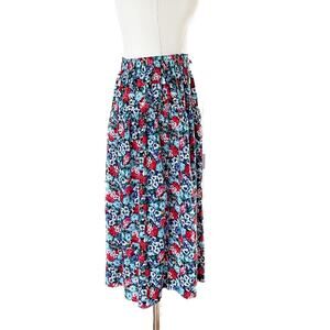 Adorable vintage 80s floral drop waist pull on midi skirt! Decorative front bow. Elastic waist. Lightweight and so vibrant colors! Made in the USA back in its day