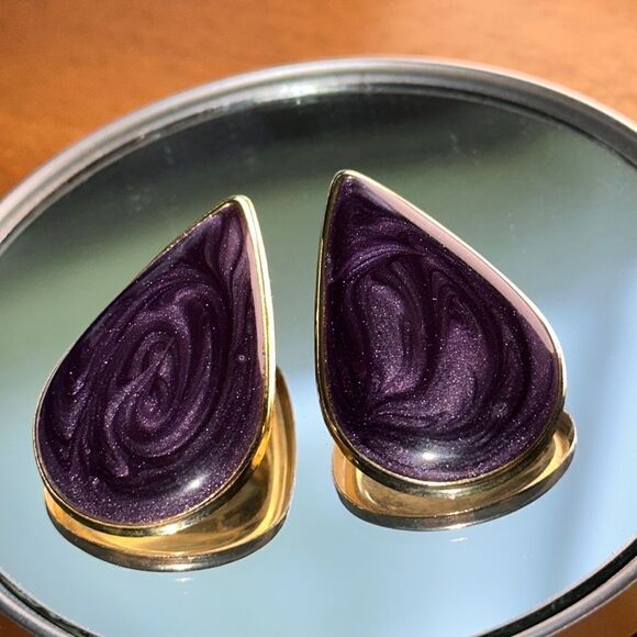 Vintage 80s teardrop shaped purple swirl enamel painted post earrings