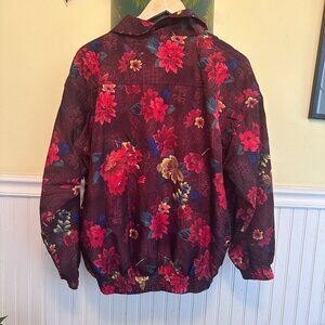 Vintage 80s track suit windbreaker jacket floral print zip up red Kaktus M