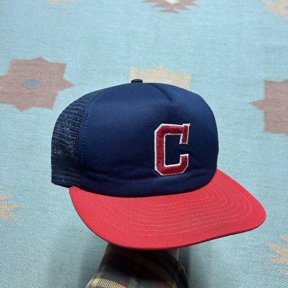 Vintage 80s trucker hat mesh cap Cleveland Indians plain logo MLB baseball