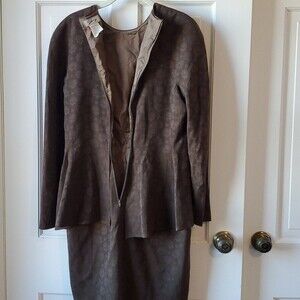 Vintage 80s wool dress with peplum and shoulder pads brown embossed floral pattern