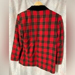 Vintage 80s/90 Red Plaid Wool Blend Blazer Velvet Collar