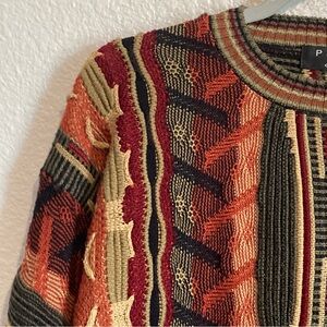 VINTAGE 90s Rainbow 3D Textured Knit! Vintage 90s Knit, Coogi Style, Chunky Cable Knit,