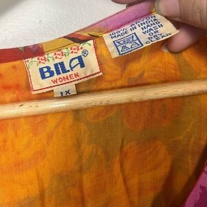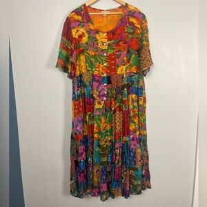 Vintage 80s/90s Bila women midi patchwork button front dress size 1X