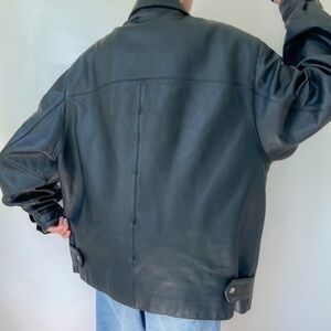 Vintage 80s/90s Black Collared Leather Aviator Bomber Jacket ✨