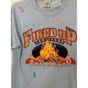 Vintage 80's 90's Christian Camp Shirt Medium Fired up for Jesus Bible Church