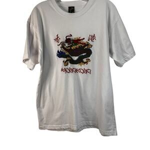 Vintage dragon tee, embroidered Hong Kong shirt, 80s 90s souvenir top, made in Hong Kong, Asian streetwear, Y2K travel tee, retro cotton shirt, unisex XL