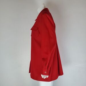 Vintage 80's/90's Fundamental Things red wool shacket. Has non-removable shoulder pads, 2 flap chest pockets, button closure, and inner lining.