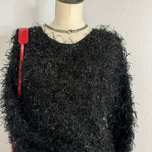 Vintage 80s/90s Fuzzy Black and Gold Tinsel Sweaters