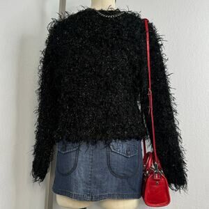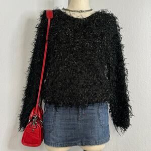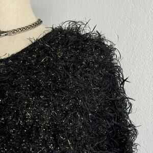 Vintage 80s/90s Fuzzy Black and Gold Tinsel Sweater, Would Be Great For a New York’s Eve Party, Size Small, Good Condition