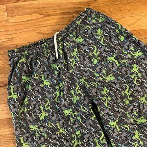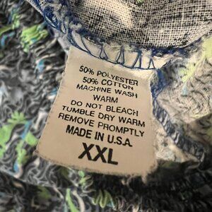 This is an awesome fair of Vintage 80s/90s GECKO Hawaii All-Over Print Gecko 50/50 Drawstring MADE IN USA Muscle Gym Parachute Pants in a size Men's XXL, although they fit anyone from a Medium on up. Super light and comfortable. 50% Poly, 50% Cotton.