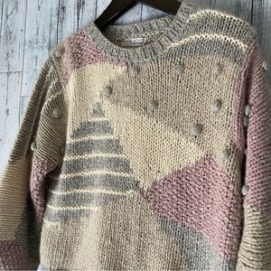 Vintage 80’s/90’s Geometric Hand Knit Neutral Pink Grandma Sweater size medium