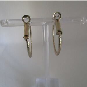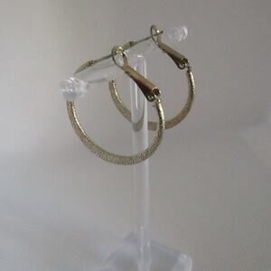 Vintage 80s/90s Gold Tone Hoop Earrings Textured Glitter Finish 1in Latch Back