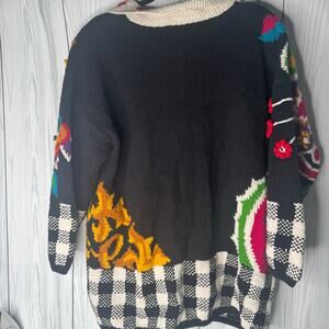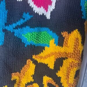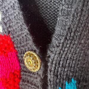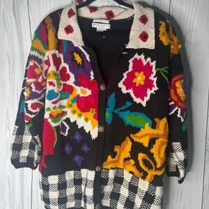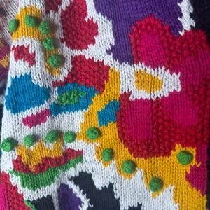 Vintage 80s/90s Hand Knit Chunky Floral Funky Gold Button Cardigan 2XL Jen Reed