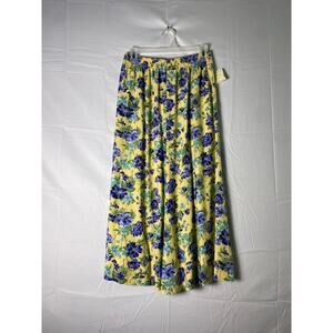 Vintage 80s-90s Jantzen Classics Yellow Blue Floral A-Line Flared Skirt Size 12