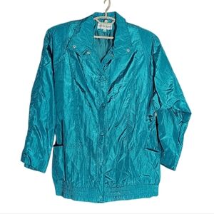 Vintage 80s/90s Kristen Blake Teal Green Crinkle Nylon Windbreaker Jacket Medium
