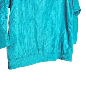 Vintage 80s/90s Kristen Blake Bright Teal Green Crinkle Nylon Windbreaker Jacket w/ Shoulder Pads Size M (Oversized Fit)