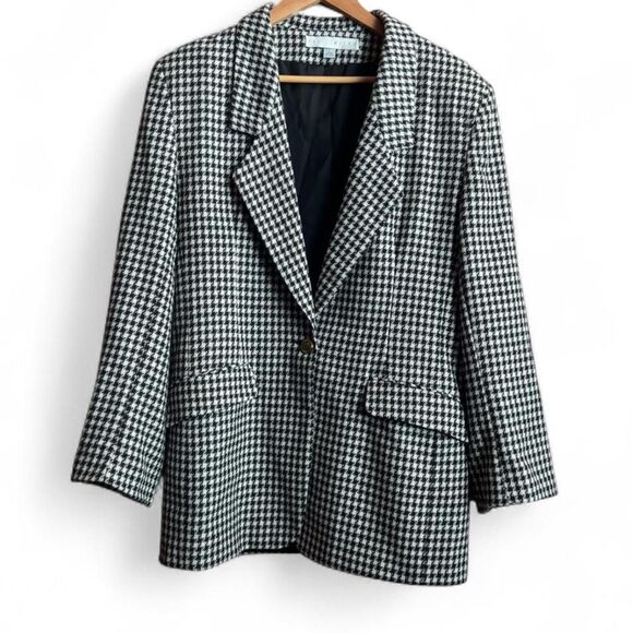 Vintage 80's/90's Made In USA Wool Houndstooth Womens Blazer