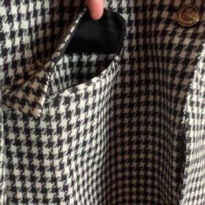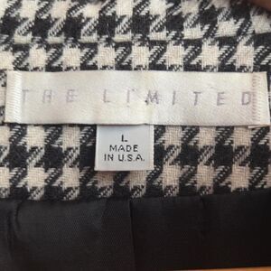 Vintage 80’s/90’s Made in USA “The Limited” wool-blend ultra chic Black & white houndstooth blazer with shoulder pads, flap pockets, and statement buttons. Size L. Excellent condition. Dry clean only.