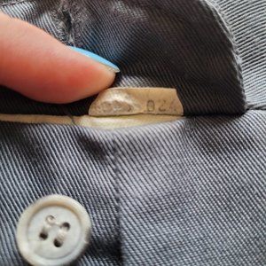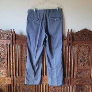 Medium dark, cool gray colored khaki style trousers from 80s/90s era Lands' End with functional front flap watch pocket, two side pockets for your hands, and two back functional flap pockets. Excellent preowned condition.