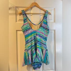 Vintage 80s/90s One Piece Swimsuit Teal Purple Women's 16